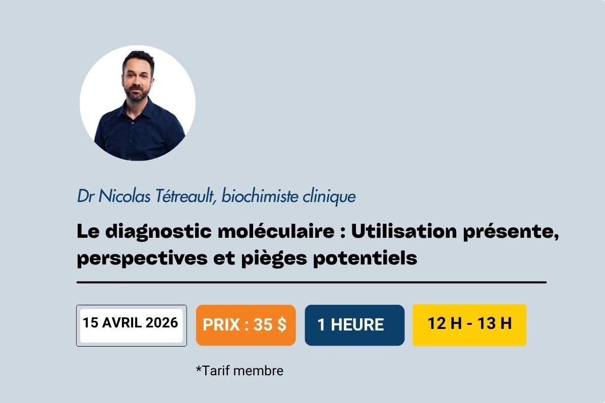 Les midis-conférences proposées abordent des enjeux actuels du laboratoire médical et mettent de l’avant des contenus concrets, directement applicables dans le milieu de travail. Chaque midi-conférence est offerte au coût de 35 $, dont quatre sont offertes gratuitement au cours de l’année.