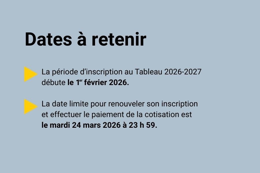 Inscription au Tableau : période de renouvellement